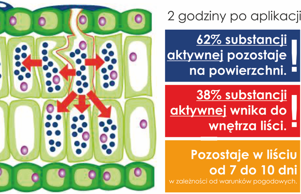WAŻNE! Preparatu nie należy mieszać ze środkami bakteriobójczymi oraz zawierającymi związki miedzi. Ciecz robocza powinna mieć pH między 5 a 8,5 i należy ją zużyć w ciągu 8 godzin od zmieszania.
