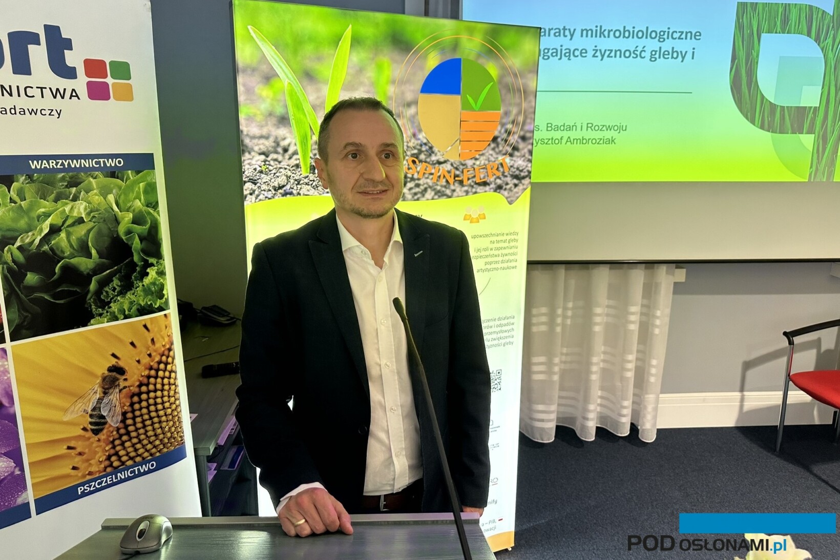 W konferencji wziął udział także dr Krzysztof Ambroziak, reprezentujący firmę Intermag, jednego z największych producentów biostymulatorów, nawozów specjalistycznych bioproduktów. W dziale R&D firmy pracuje obecnie 18 osób, dzięki czemu firma może samodzielnie prowadzić wiele badań i doświadczeń. W zakresie zadań specjalistów jest wykonywanie badań formulacyjnych, analiz chemicznych, produktów biologicznych i mikrobiologicznych. Firma dostarcza swoje rozwiązania do ponad 45 krajów, a w ofercie jest asortyment środków do biostymulacji roślin (Tytanit, Optysil i Planticine) odżywki dla roślin, agrochemikalia, produkty specjalne. Pierwszym produktem mikrobiologicznym który był wprowadzony na rynek był Bactim Słoma, który wspomaga rozkład resztek pożniwnych pozostających na polu po zbiorach. Resztki pożniwne, słoma i korzenie roślin są bogatym źródłem materii organicznej, co wpływa na zwiększenie zawartości w glebie potasu i fosforu – można „oddać” glebie składniki, które były wcześniej z niej pobrane w okresie wzrostu roślin. Drugi produkt mikrobiologiczny wspomagający podniesienie zawartości próchnicy w glebie to Bactim Gleba. W projekcie SPIN-FERT firma Intermag będzie namnażała szczepy bakterii Bacillus subtillis i Paenibacillus polymyxa, a także szczepy dostarczone przez innych konsorcjantów projektu.
