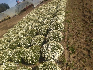W połowie czerwca na pole trafiają chryzantemy drobnokwiatowe sadzone w donicach i misach. Do jesieni są produkowane bez osłaniania, a w październiku zakłada się nad nimi tunele (dziękuję panu Pawłowi za udostępnienie zdjęć chryzantem).