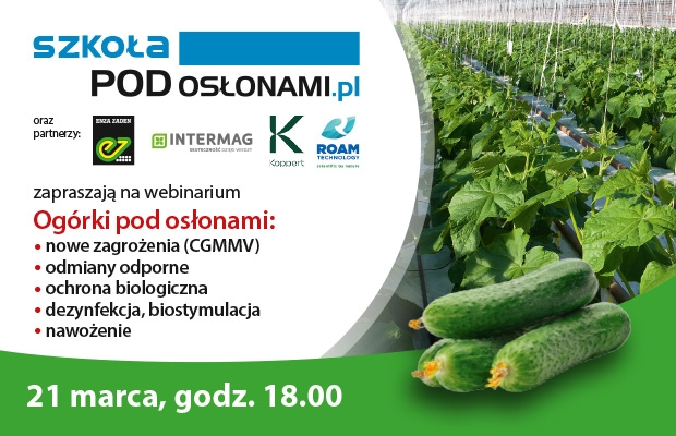 Już za tydzień, 21 marca o godzinie 18-tej, zapraszamy Państwa na webinarium poświęcone uprawie i ochronie ogórków pod osłonami – w szklarniach i tunelach foliowych. Swoimi doświadczeniami podzielą się specjaliści z firm działających w branży ogrodniczej. Ważną nowością w ofercie firmy Enza Zaden są odmiany ogórka odporne na CGMMW – ten temat omówi Mateusz Janas. Podstawowe zalecenia dotyczące biologicznej ochrony ogórków przedstawi dr inż. Sabina Łukaszewicz-Chrzan, reprezentująca Koppert Polska. O nowoczesnych rozwiązaniach do dezynfekcji obiektów, odkażania mat uprawowych oraz innowacyjnych nawozach powie Wojciech Juńczyk z firmy Roam Technology. Firmę Intermag będzie reprezentować Piotr Zawadzki, który przedstawi produkty mikrobiologiczne i nawozy mikroelementowe polecane do upraw ogórków.