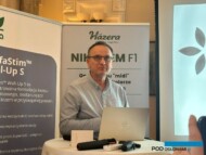 Andrzej Zbroja pokazał nowy produkt z oferty firmy Symbioz – Triavit. Jest to organiczny biostymulator wzrostu roślin, stosowany w nowoczesnych technologiach upraw ogrodniczych i sadowniczych, którego zadaniem jest poprawa kondycji roślin, jakości plonu oraz zwiększenie odporności na stresy środowiskowe.