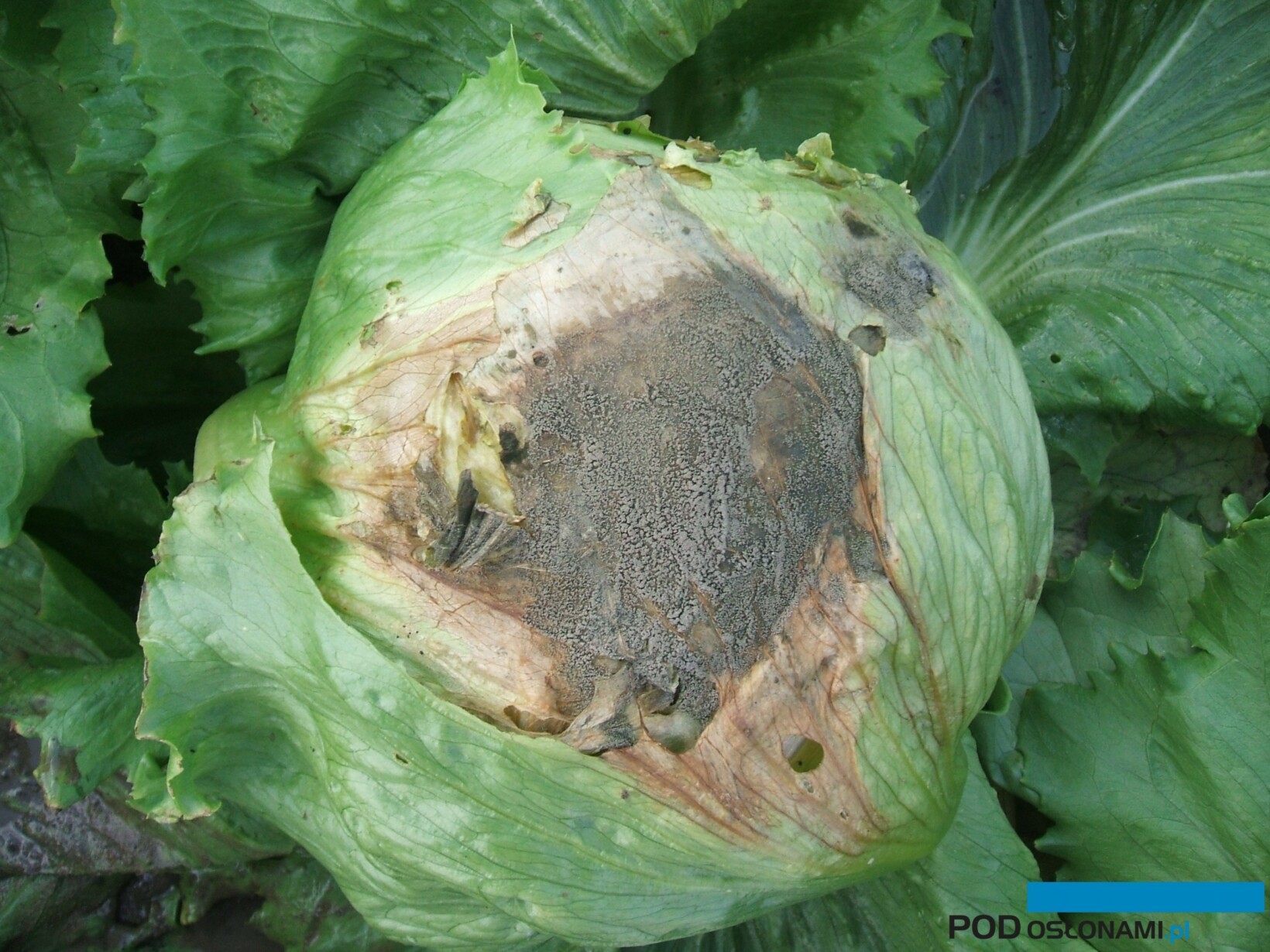 Bakteryjna zgnilizna podstawy pędu powoduje gnicie główki sałaty od spodu. Na przekroju główki widoczne są zabrązowiałe wiązki przewodzące. – Żeby zmniejszyć niebezpieczeństwo tej choroby rozsadę można sadzić w cylinderkach albo w doniczkach ażurowych, dzięki czemu podstawa główki jest nieco wyniesiona ponad powierzchnie gruntu. Bardzo dobrym rozwiązaniem jest sadzenie roślin na glebie ściółkowanej czarną agrowłókniną, która zmniejsza dostęp wilgoci i bakterii do podstawy główki – doradzała dr Agnieszka Stępowska. Po sadzeniu rozsady można prewencyjnie opryskać rośliny środkiem ochrony roślin lub innym preparatem polecanym do tego celu (np. Polyversum lub środek na bazie wyciągu z cytrusów).