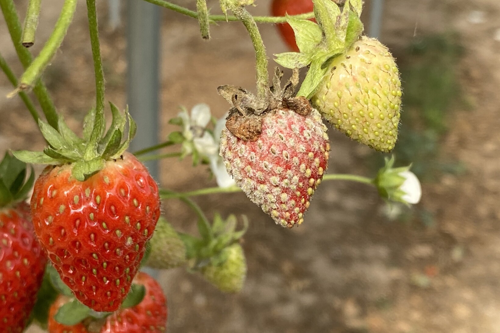 Grzyb Podosphaera aphanis – sprawca mączniaka prawdziwego truskawki to groźny patogen plantacji produkcyjnych, zarówno polowych, jak i – a nawet bardziej – tych pod osłonami. Główne objawy są widoczne na liściach, ale niezwalczany patogen może także porażać zawiązki i owoce. Jest to duży problem w obrocie handlowym, gdzie owoce ze względu na obecność białego nalotu są dyskwalifikowane.