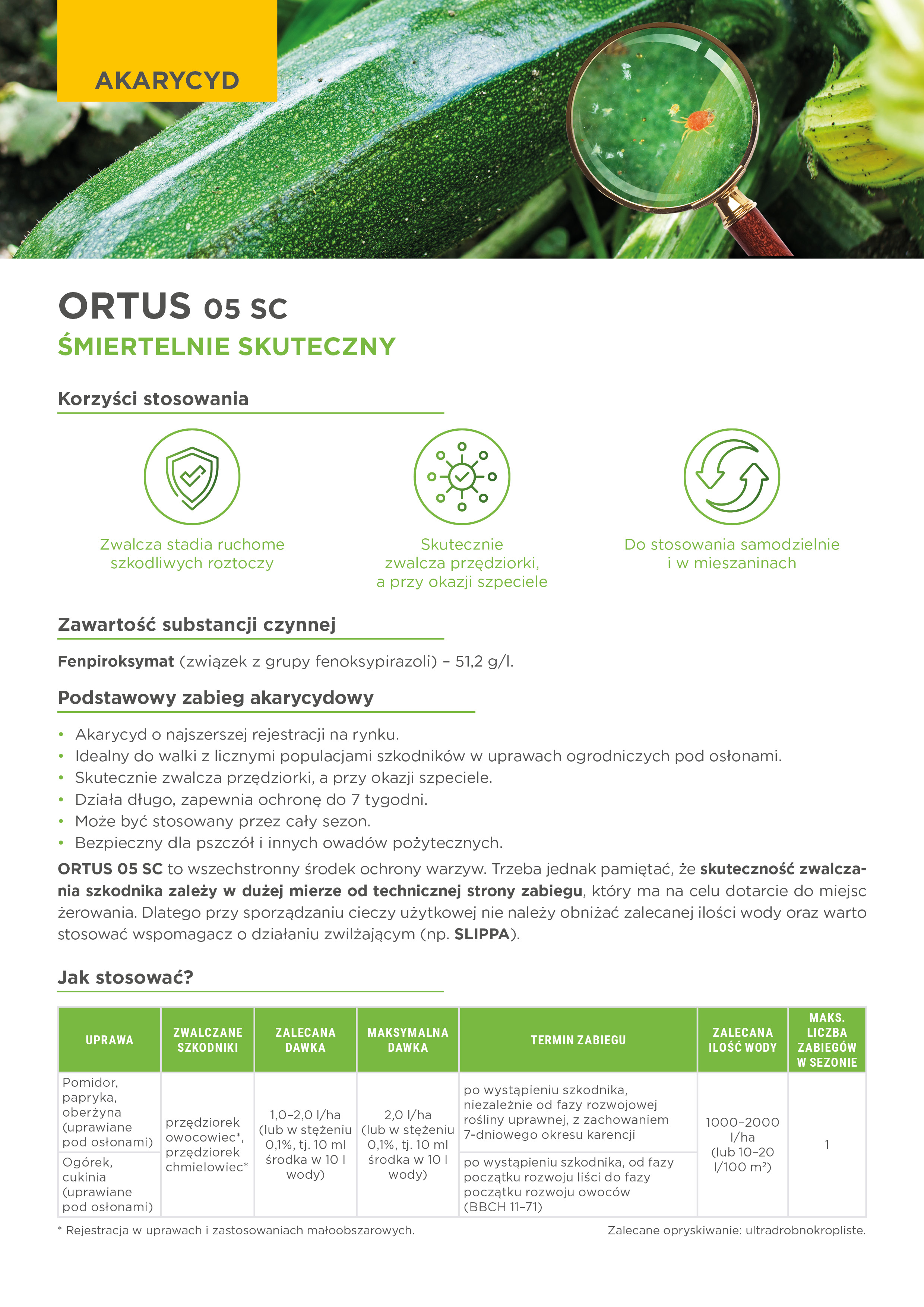 - ORTUS 05 SC – skutecznie eliminuje ruchome stadia rozwojowe w tym dorosłe osobniki, uzupełniając działanie NISSORUN STRONG.