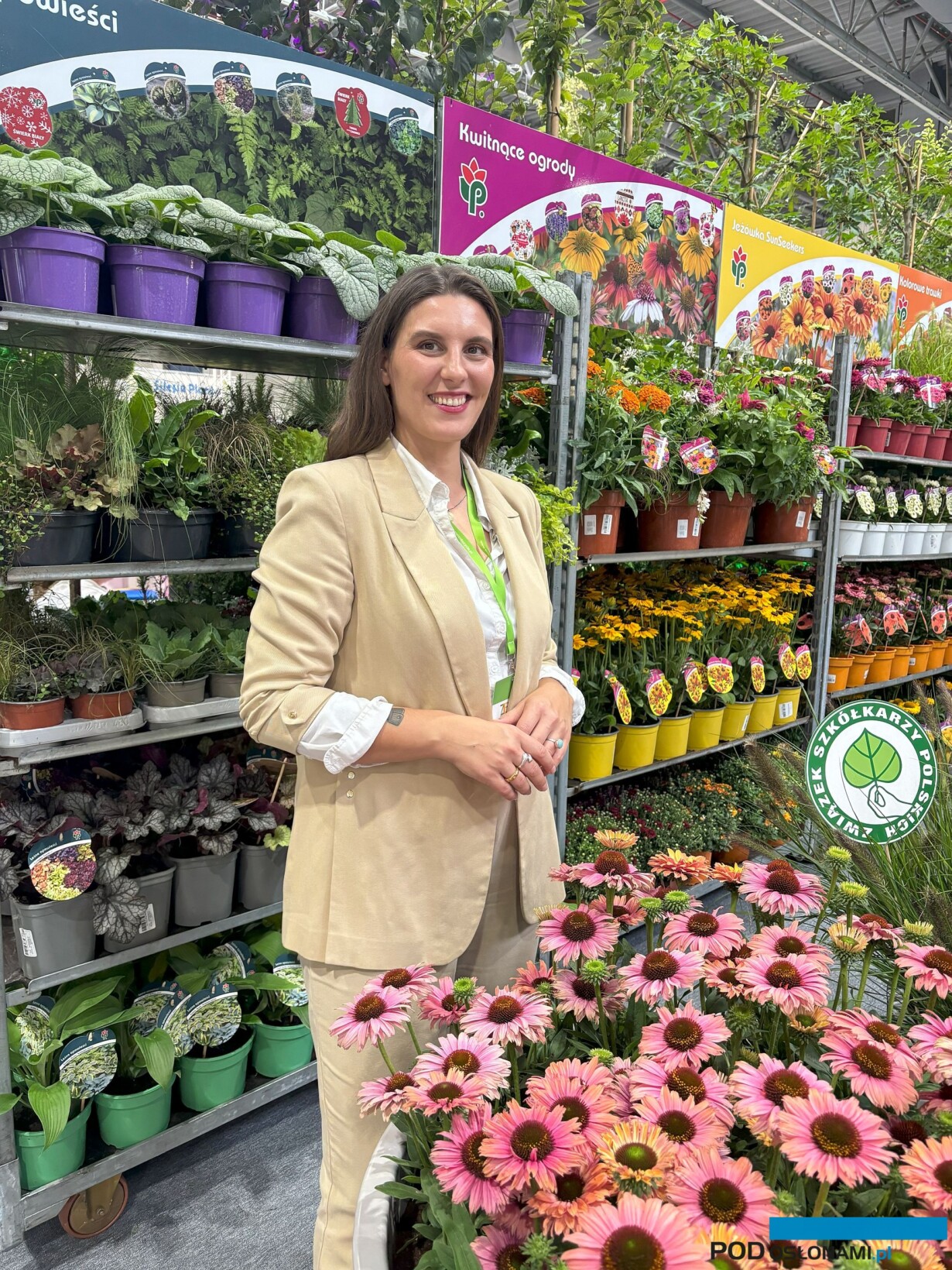 Dodała, że segment bylin w gospodarstwie, które reprezentuje, rozwija się bardzo dobrze. W gronie bestsellerów wymieniła lawendę wąskolistną (odmiany ‘Hidcote’ i ‘Essence Purple’), a także jeżówki (Echinacea) – na stoisku przedstawiono odmiany z grupy SunSeekers, wśród których – jak powiedziała K. Rytel – wielką popularnością cieszy się ‘Rainbow’ (zmienna kolorystyka w trakcie rozwoju kwiatostanu), a także ‘Sweet Fuchsia’ (dobre wypełnienie ciemnoróżowego koszyczka kwiatostanowego).
