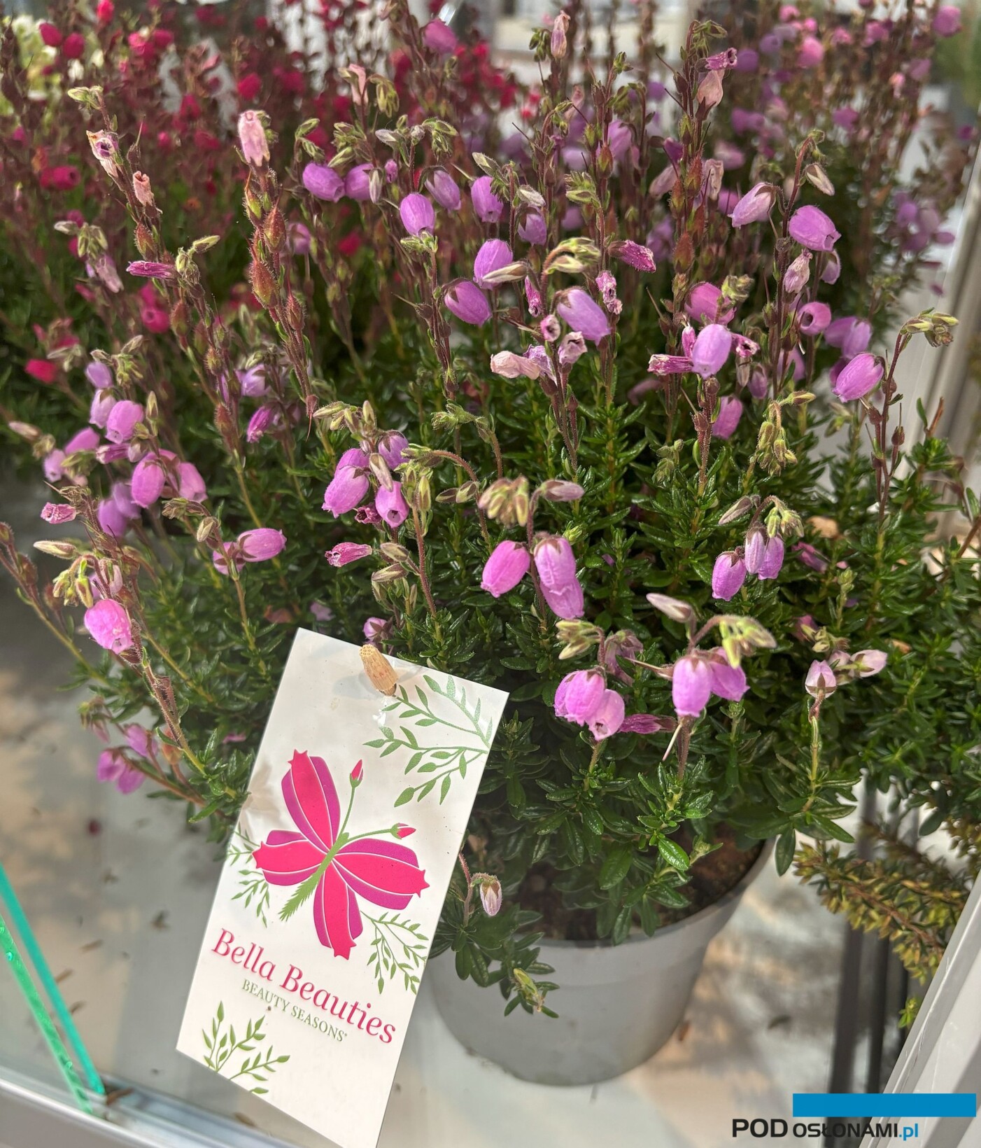Nowością z tego samego stoiska – i od tego samego hodowcy – była grupa Bella Beauties® dabecji kantabryjskiej (Daboecia cantabrica). Odmiany z tej grupy, których jest 5, mają się odznaczać zwiększoną odpornością na choroby, kompaktowym pokrojem i mocną budową roślin oraz intensywną kolorystyką licznych dzwoneczkowatych kwiatów, które tworzą zwarte, trwałe, samooczyszczające się kwiatostany. Jak powiedział B. Rietberg, kwitnienie roślin przypada na okres od lipca do września – przy doniczkowaniu ukorzenionych sadzonek w kwietniu, ale gdy zostaną przycięte, opóźni to kwitnienie (nastąpi ono wówczas w październiku), a zarazem zagęści krzewinki.