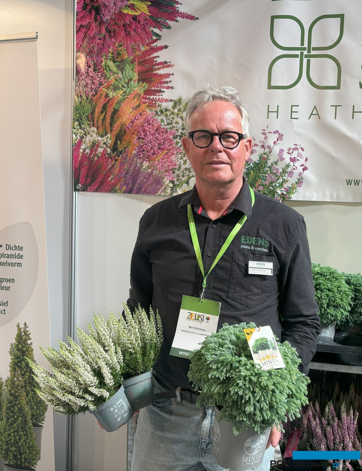 Holenderska firma Edens Plants & Creations, debiutująca jako wystawca targów Zieleń to Życie, pokazała głównie ozdobne krzewinki z rodziny Ericaceae oraz karłowe krzewy iglaste w doniczkach – produkty, które mogą być domeną ogrodników prowadzących uprawy w szklarniach lub tunelach (i na sąsiadującej z tymi obiektami kontenerowni). Edens Creations to nazwa powszechnie kojarzona na międzynarodowym rynku z hodowlą pączkowych odmian wrzosu pospolitego (Calluna vulgaris) z grupy Beauty Ladies®, która funkcjonuje w obrocie od ponad dwudziestu lat (a od 2013 roku kreacje te rozmnażane są w Polsce przez tutejszego licencyjnego partnera holenderskiego hodowcy – firmę Calluna).