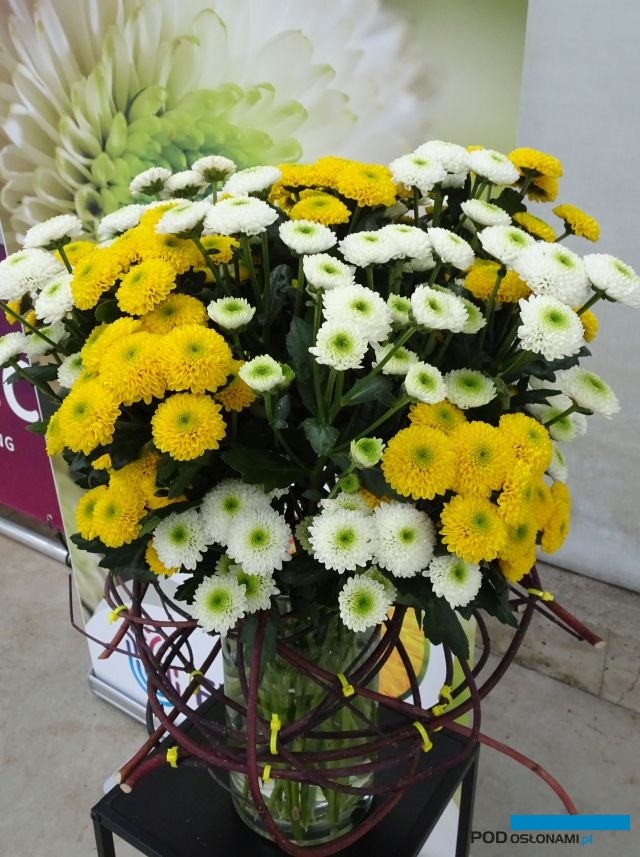Zwracają uwagę kreacje dwubarwne, które – jak powiedziała D. Hoogeveen, są w centrum uwagi firmy Floritec, jeśli chodzi o hodowlę doniczkowych odmian chryzantemy o pojedynczych koszyczkach kwiatostanowych. W czerwcu wzrok przykuwały następujące: Lysandra, Sensa, Sia.