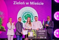 - W środku trójka laureatów konkursu „Zieleń w Mieście” 2025; z lewej – dyr. projektu Gardenia P. Maniecka; z prawej M. Dąbrowski z OSTO (Fotobueno)