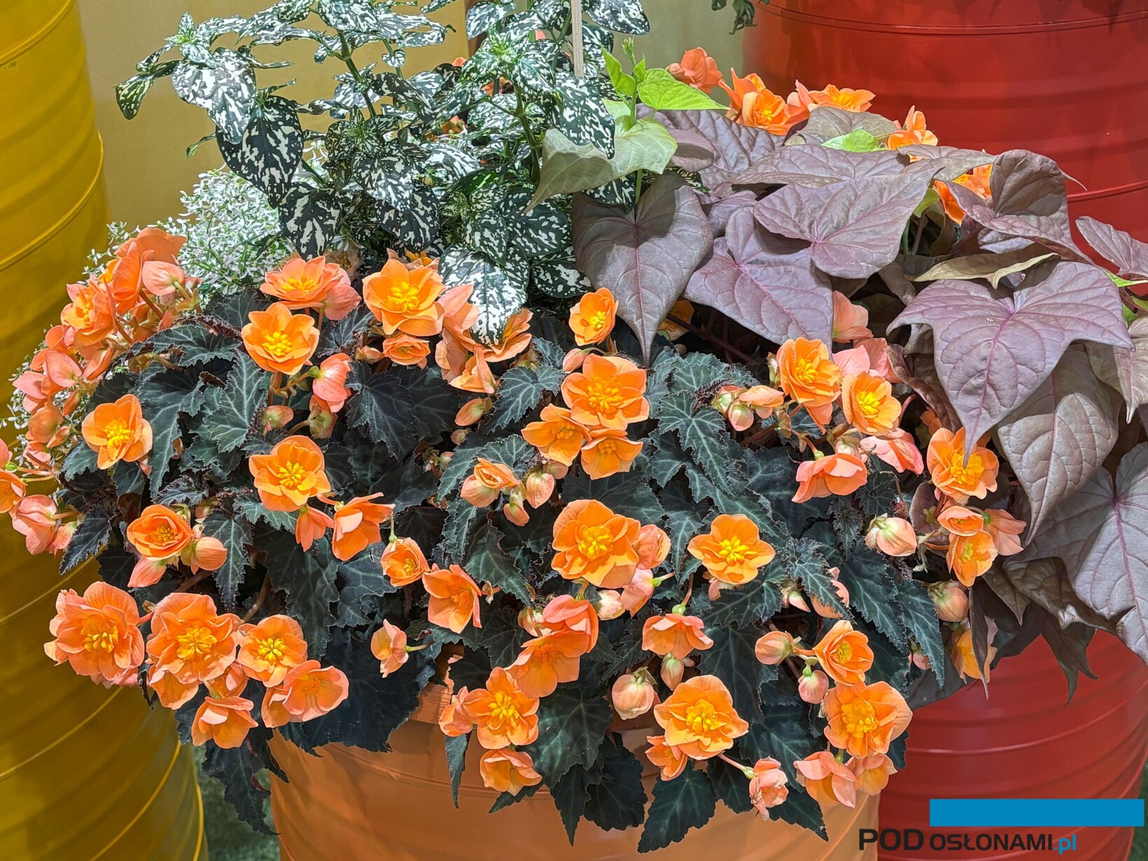 Wśród roślin, które eksponowano, znalazły się m.in. odmiany z grupy (serii) Rockin szałwii (Salvia), rozmnażane wegetatywnie. Paweł Marcinkowski zwrócił uwagę, że kreacje te zostały ulepszone przez hodowcę i obecna generacja odznacza się lepszym krzewieniem oraz wcześniejszym i obfitszym kwitnieniem w porównaniu z odmianami wyjściowymi, wprowadzonymi na rynek parę lat temu (i pokazywanymi np. podczas Dni Otwartych Plantpolu 2023). Szałwie Rockin prezentowano w Essen w kilkugatunkowych kompozycjach, w których występowały też odmiany niedośpianu – Hypoestes phyllostachya z grupy Hippo, pełniące rolę roślin „strukturalnych”. Paweł Marcinkowski określił te odmiany (cztery, o różnym ubarwieniu ozdobnych plamek na liściach) jako bardzo dobry produkt, który już zadomowił się na europejskim rynku, gdzie jest oferowany od 2019 r.