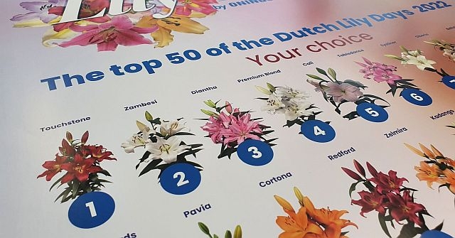 W efekcie, powstał liliowy Top 50, który w 2022 roku otwierają dwa mieszańce OT hodowli firmy Mak Breeding – Touchstone oraz Zambesi (biała odmiana, zwyciężczyni rankingu w 2018 r.). Na trzecim miejscu uplasowała się lilia orientalna Diantha – o pełnych różowych kwiatach, hodowli przedsiębiorstwa Gebr. Vletter & Den Haan. Kolejne kilka pozycji zajęły odmiany: Premium Blond (biała, OR, Mak Breeding), Cali (jasnoróżowa, OL, Marklily), Tabledance (różowa, OT, Mak Breeding), Eyeliner (biała z obwódką, LA, Marklily), Siberia (biała, OR, Mak Breeding).