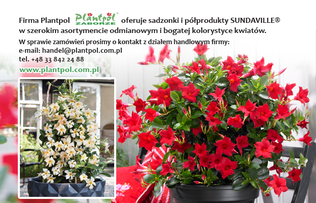 W Polsce dość szybko od premiery, mandewilę Sundaville® Red oferował Plantpol. Nie tylko wprowadził tę nowość do swojej oferty (początkowo na zasadach wyłączności w naszym kraju), ale też rozmnażał w Zaborzu tę roślinę, pozyskując sadzonki z własnych mateczników. Jak wspomina prezes Plantpolu Jerzy Starzyński, sukces jaki odniosła kierowana przez niego firma, jeśli chodzi o Sundaville® Red, wymagał tu szeroko zakrojonej promocji i dużych nakładów na marketing. Była to bowiem stosunkowo droga roślina balkonowo-rabatowa, a przy tym nowa w naszych warunkach klimatycznych, w których dipladenie uchodziły za śródziemnomorską egzotykę – silnie rosnące pnącza, które kojarzą się z basenem Morza Śródziemnego. Cechy tej przełomowej odmiany, takie jak dobra odporność na niesprzyjające warunki pogodowe oraz niedobór wody, solidny, rozkrzewiony wzrost i ładny pokrój, a przy tym obfite kwitnienie roślin od wiosny do późnej jesieni, pozwalały jednak budować i poszerzać rodzimy rynek odbiorców „sundawili”.