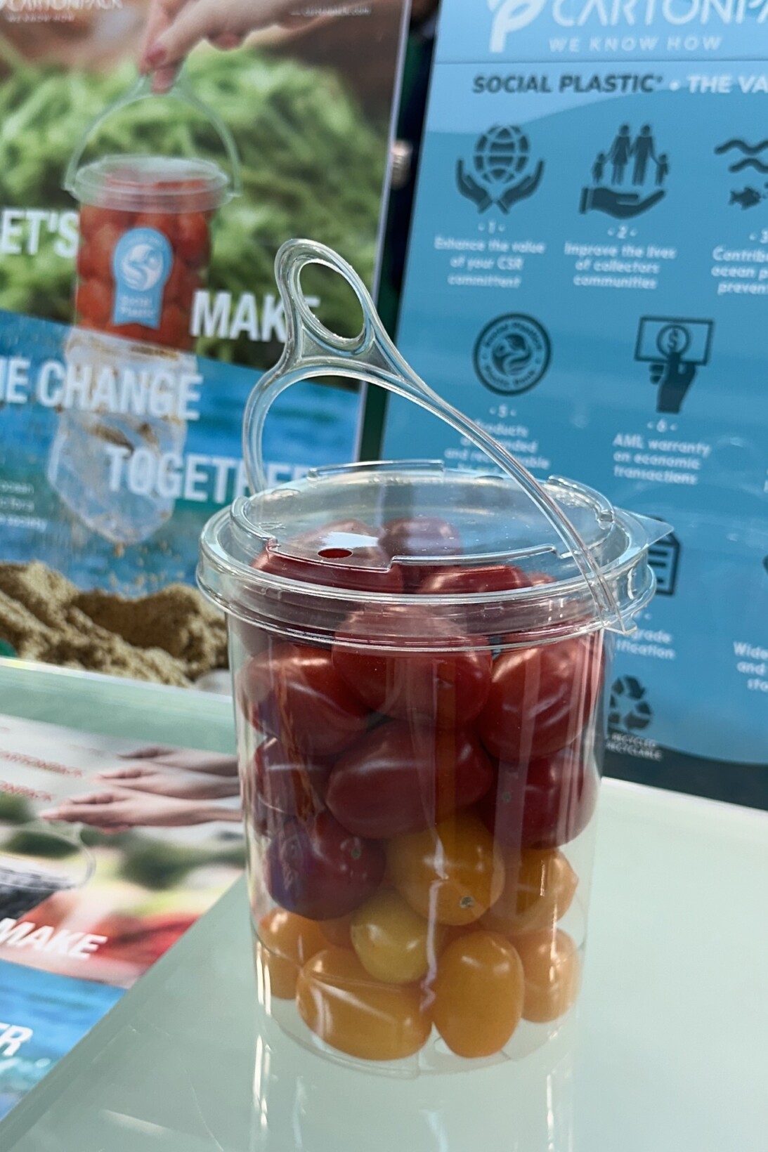 Nadal dużą część opakowań do warzyw, głównie pomidorów koktajlowych czy typu cherry, oferowanych luzem lub w gronach, stanowią te wykonane z PV. Mogą mieć kształt punnetu zamykanego pokrywką opatrzonego papierową etykietą zawierającą najważniejsze informacje o produkcie. Druga opcja to kubek z pokrywką typu shaker. Te mogą być także opakowania etykietą lub zadrukowane – zgodnie z zapotrzebowaniem punktu sprzedaży. W ten sposób są pakowane pomidory małego kalibru lub miniogórki, czy minipapryki.