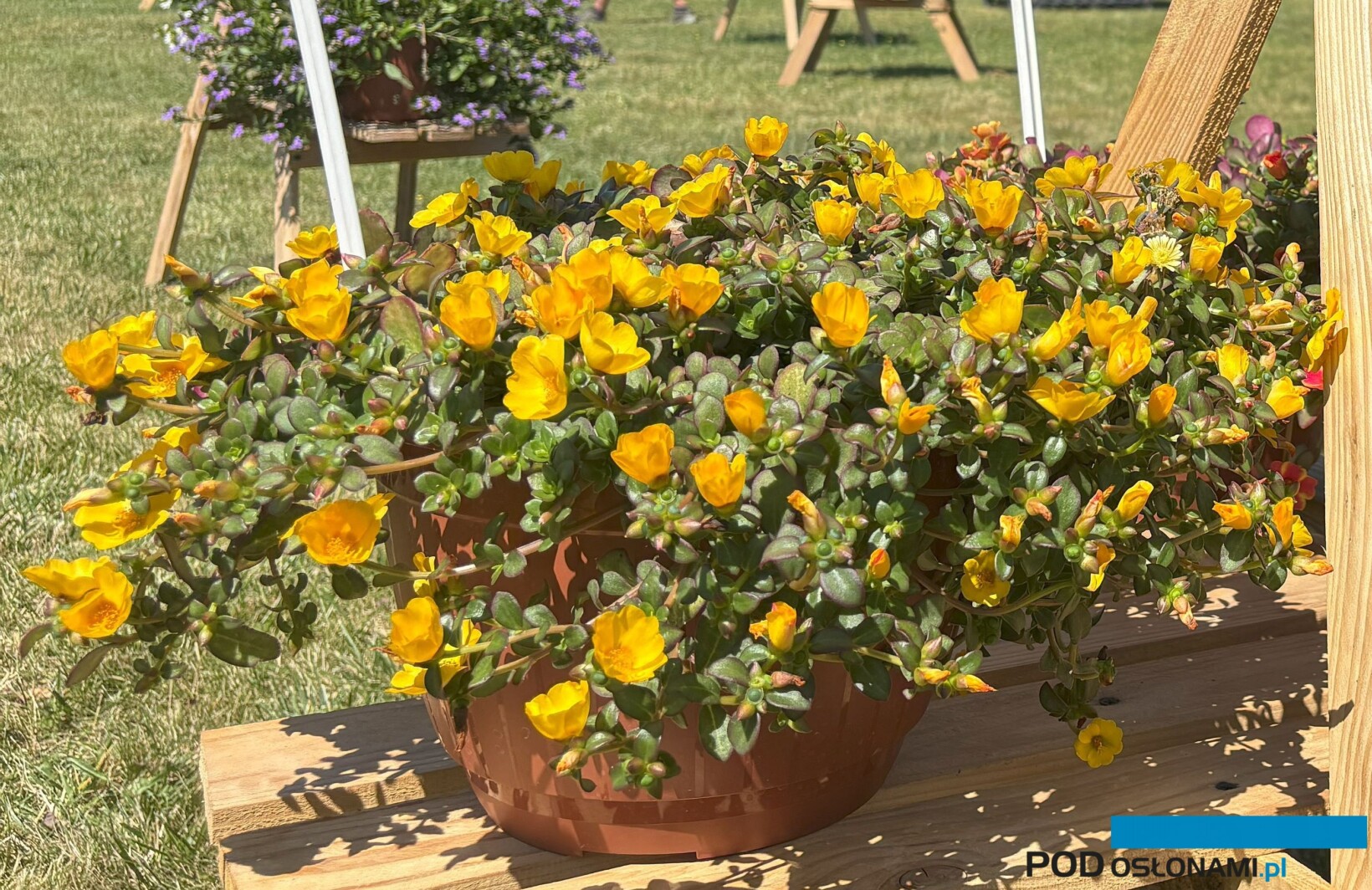 Podobnie jak w 2023 r., charakterystycznym elementem prezentacji były kompozycje w dużych skrzyniach. Ponownie w tego typu nasadzeniach nie zabrakło bioróżnorodnych mieszanek przyjaznych owadom zapylającym – zgodnie z ważnym ogrodniczym trendem. Przedstawiono też „mix” z udziałem sukulentów, obrazujący kolejną tendencję na rynku, która wynika z rosnącego popytu na gatunki o ograniczonym zapotrzebowaniu na wodę i się nasila. Przykładem roślin, które łączą oba te trendy, są portulaki (z serii Pazzaz) o kwiatach pojedynczych – wabiących pszczoły i w związku z tym coraz częściej pożądanych na rynku. Nowością jest dwubarwna kreacja Pazzaz Mega Papaya Twist.