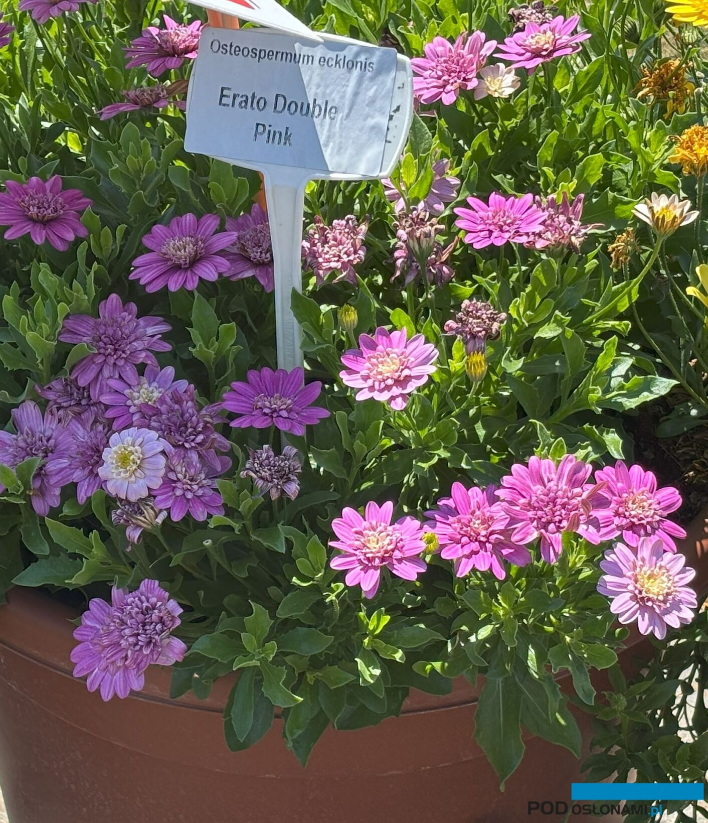 Osteospermum – grupa Erato. Na terenie pokazowym jako nowości zaprezentowano odmiany Erato Compact Cranberry i Erato Double Pink (ulepszona). Julian Majchrzak polecał też odmianę Erato Compact Yellow Pink Eye, która wzbogaciła asortyment produktów dostępnych w sezonie 2025/2026.