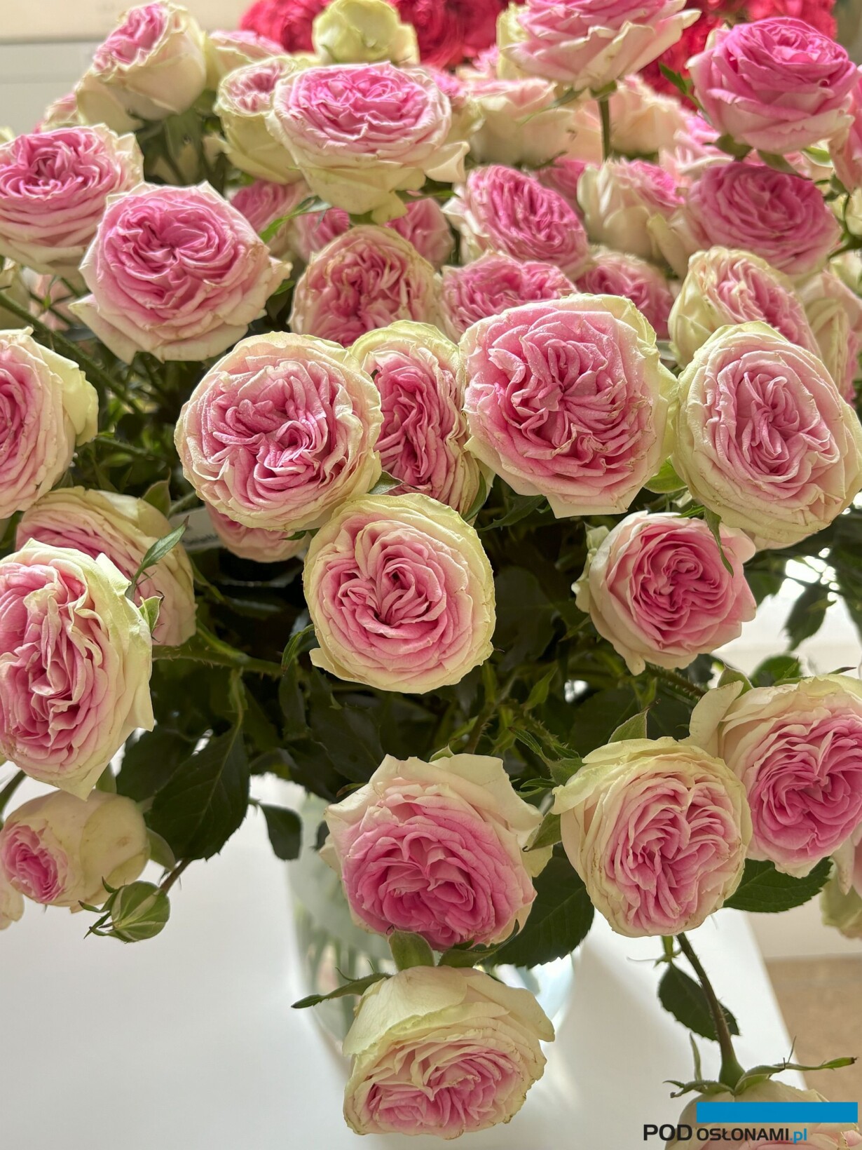 Asortyment z upraw pod osłonami najliczniej reprezentowany był na stanowisku Hurtowni kwiatów ciętych Pietruch, gdzie dominowały okazałe i o wyrazistych barwach róże z Ekwadoru (m.in. Deep Purple, Pink Floyd).