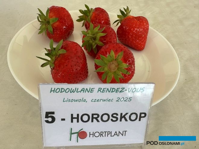 Kolejna propozycja to Hortensja. Jest to kreacja średnio wczesna (8 dni po Rumbie), plenna, z połyskiem, o dużych owocach, z wysokim udziałem owoców pierwszej klasy, o wysokiej twardości. Rośliny są odporne na choroby liści. Sadzonki odmiany Hortensja będą dostępne w sezonie 2005-2026.