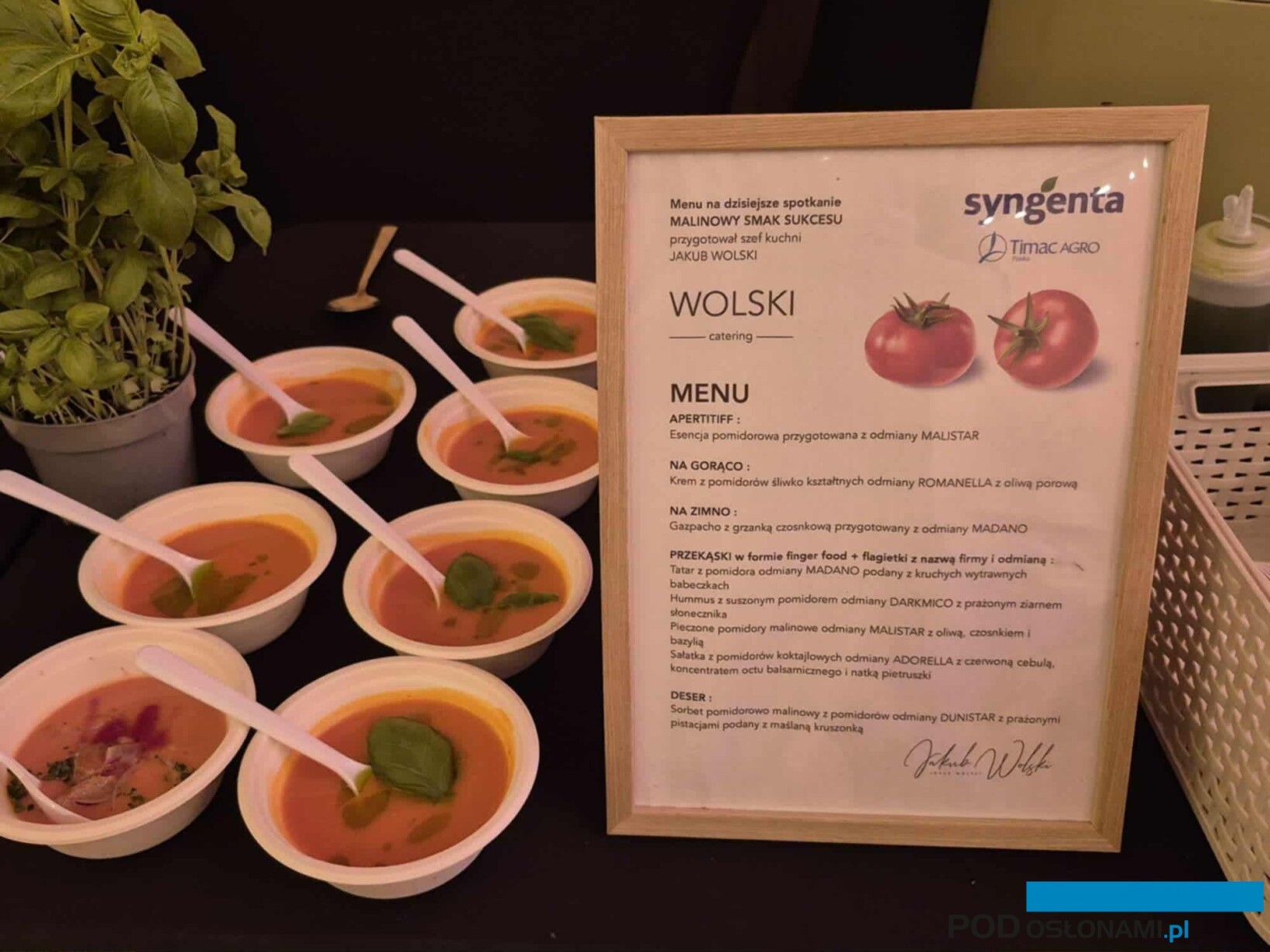 „Malinowy smak sukcesu” to spotkanie, na którym przedstawiono najnowsze pomidory malinowe marki Syngenta. Obok pomidorów mówiono także o rozwiązaniach w zakresie nawożenia, ochrony biologicznej i doświetlania upraw pomidora. Organizatorami eventu były firmy: Syngenta, Timac Agro Polska, Grupa Producentów Rozsad Krasoń, Koppert Polska i Slim Light Design. Gościem specjalnym był Jakub Wolski – znany mistrz kulinarny. Inspirował on ponad 60 producentów do kreatywnego wykorzystania pomidorów kuchni.