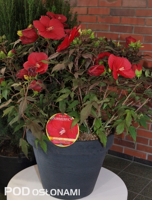 firmę PLANTPOL z Oświęcimia-Zaborza) – o okazałych czerwonych kwiatach o średnicy do 25 cm (VI-IX), krzewiastym pokroju i dużych liściach, polecana do ogrodów i pojemników tarasowych.
