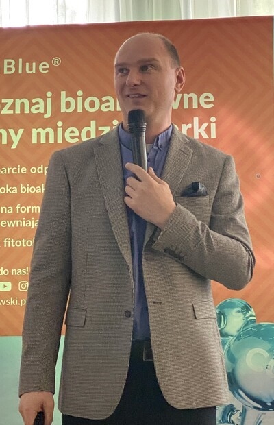 Uczestnicy mieli okazję wysłuchać także wykładu Alberta Zwierzyńskiego (Doradca Jagodowy), który przedstawił wyniki badań nad wykorzystaniem różnych form miedzi w uprawach jagodowych. Prelegent przedstawił historię wykorzystania miedzi w żywieniu i ochronie roślin, efektywność różnych jej form oraz najnowsze wyniki badań dowodzące korzystnych właściwości tego pierwiastka w ograniczaniu presji chorobowej i poprawie odporności roślin na stres biotyczny. Uzupełnieniem wykładu był krótki materiał wideo zaprezentowany przez Artura Śliza z firmy Osadkowski na temat najnowszych doświadczeń wegetacyjnych potwierdzających efektywność preparatu miedziowego Ion Blue w ograniczaniu odglebowych chorób truskawki.