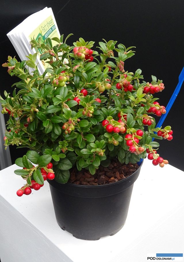 O ile zachęta do konsumowania owoców golterii może nie być przekonująca, o tyle borówka brusznica (Vaccinium vitis-idaea) powszechnie kojarzy się z rośliną użytkową. Na targach w Zundert miała swą premierę nowa odmiana tego gatunku – ‘Lirome’ FIREBALLS (w zeszłym roku szkółka Sierteeltkwekerij Maarten Bloemen V.O.F. pokazała ją podczas GrootGroenPlus na zdjęciach, a tym razem – zaprezentowała efektowne, owocujące rośliny). I tę nowość jury uhonorowało medalem – srebrnym, nagradzając odmianę m.in. za obfitsze w porównaniu z dotychczasowymi kreacjami owocowanie. Właściciel odmiany Maarten Bloemen powiedział, że jest ona mutantem jego innej bardzo udanej kreacji – Miss Cherry (‘Meliro’PBR). Podkreślił, że Fireballs jest wcześniejsza (w Holandii owocuje od końca sierpnia) i zapewnił, że utrzymuje ozdobne owoce do Świąt Bożego Narodzenia. Może więc z powodzeniem pełnić też rolę rośliny doniczkowej do sezonowej ozdoby wnętrz, dekorować jesienią (i zimą) balkony, ogródki restauracyjne itp.