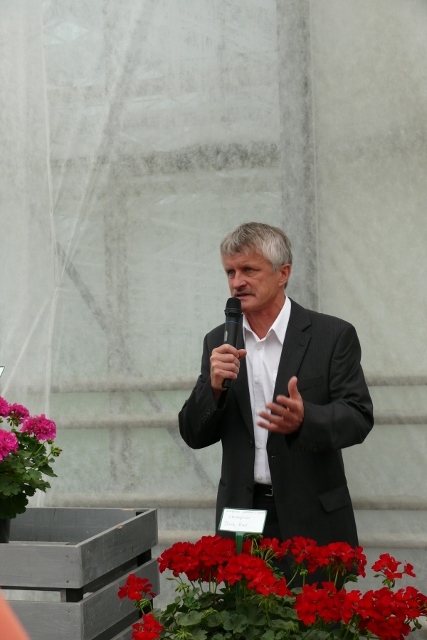 W asortymencie odmian pojawiło się sporo nowości – na ich temat mówił Paweł Marcinkowski, dyrektor ds. marketingu w firmie Plantpol. Wśród pelargonii zwracał uwagę głównie na grupę Champion, będącą wynikiem skrzyżowania Pelargonium peltatum oraz P. zonale. W grupie tej dostępne są 4 odmiany o intensywnych barwach (Champion 'Lila’ – ciemnoróżowoliliowa, Champion 'Neon’ – o zimnym odcieniu czerwieni, wpadającym w karminowy, Champion 'Red’ oraz Champion 'Single Red’ – ciemnoczerwone). Oprócz ciekawego zestawu barw Paweł Marcinkowski podkreślał również tolerancję odmian z tej grupy na uprawę w temperaturze o 2-3⁰C niższej niż większość dostępnych na rynku pelargonii (czyli średnio około 14⁰C) oraz szybki wzrost – rośliny prezentowane w końcu czerwca (zdjęcia w galerii poniżej) posadzone zostały w 13. tygodniu. Do sadzonek tych odmian będą dodawane etykiety – co pozwoli ogrodnikom na wyróżnienie produktu finalnego w sprzedaży detalicznej, a dzięki temu na uzyskanie za rośliny wyższych cen.