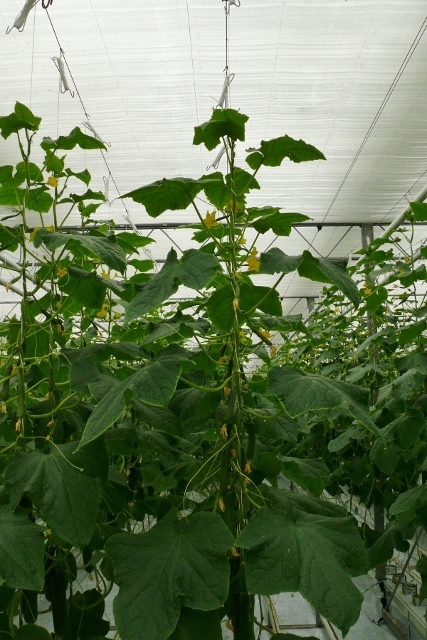 Rozsada, którą producenci przygotowali sami, została posadzona (wstawiona w otwory na matach wełny mineralnej) 31 stycznia. Na początku uprawy w tym rejonie – podobnie jak na większości obszaru kraju – było bardzo mało, bo zaledwie pięć dni słonecznych. Mimo tego uprawa prezentowała się dobrze. W początkowym okresie wzrostu roślin zawiązki usuwano do wysokości 5. liścia. Rośliny były dokarmiane dwutlenkiem węgla – w dni pochmurne jego stężenie utrzymywano na poziomie 500 ppm, a w słoneczne około 750 ppm. Ogórki w szklarni państwa Zasuniów uprawiane są w matach wełny mineralnej Grodan Master, w zagęszczeniu 1,9 rośliny na metr kwadratowy. Prowadzone są w systemie wysokiego drutu, z opuszczaniem roślin – do mniej więcej końca maja. Później rośliny będą ogłowione i poprowadzone „na parasol” – w tym systemie uprawa będzie kontynuowana aż do około połowy lipca. Podkreślano, że rośliny odmiany Meleas RZ F1 dzięki krótkim międzywęźlom nie wymagają zbyt częstego opuszczania, co pozwala zmniejszyć nieco nakłady pracy na ich pielęgnację, ze względu na „kompaktową” budowę sprawdzają się również w uprawie w niższych obiektach starego typu.