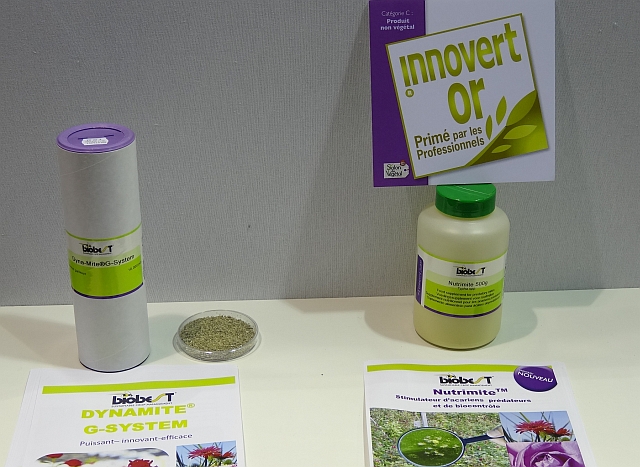 Złoty medal przypadł firmie Biobest France za Nutrimite™. Ten nowy product, wykorzystywany w biologicznej ochronie roślin. Jest mieszaniną pyłków, które służą do dokarmiania drapieżnych roztoczy (np. Amblyseius swirskii) – naturalnych wrogów niektórych szkodników występujących w uprawach pod osłonami. Taki pokarm podnosi efektywność entomofagów, zwiększa ich populację w uprawie, a w efekcie ogranicza liczbę interwencyjnych zabiegów chemicznych, które zwykle są uzupełnieniem ochrony biologicznej.