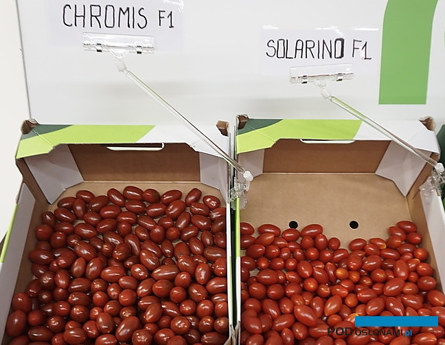 Firma zaprezentowała bardzo ciekawy asortyment pomidorów standardowych, gronowych, koktajlowych oraz typu cherry. Omówili go przedstawiciele firmy – Marcin Mech i Krzysztof Banaszak.