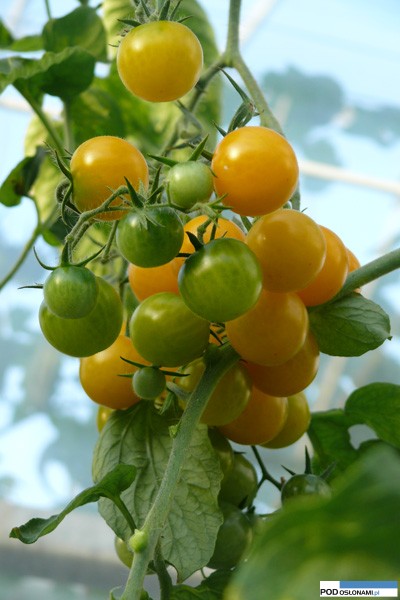 W szklarni w Jurkowie w jesiennym cyklu uprawy rosły także niewielkie ilości pomidorowych rarytasów – była koktajlowa odmiana Cheramy F1 (fot. 5) o czerwonych owcach oraz żółtopomarańczowy pomidor Summer Sun F1 – typu cherry (fot. 6). Ogrodnicy bardzo dobrze oceniali smak owoców tych odmian, szczególnie od tym względem wyróżniał się żółtoowocowy pomidor, wyjątkowo słodki. Takie nowości muszą być jednak wprowadzane stopniowo – najpierw, zdaniem pana Andrzeja, trzeba je odpowiednio wypromować wśród odbiorców, gdyż obecnie za pomidory typu cherry barwy żółtej trudno uzyskać takie same ceny, jak za te o czerwonych owocach. Rozwiązaniem może okazać się przygotowywanie różnokolorowych mieszanych zestawów pomidorów drobnoowocowych.