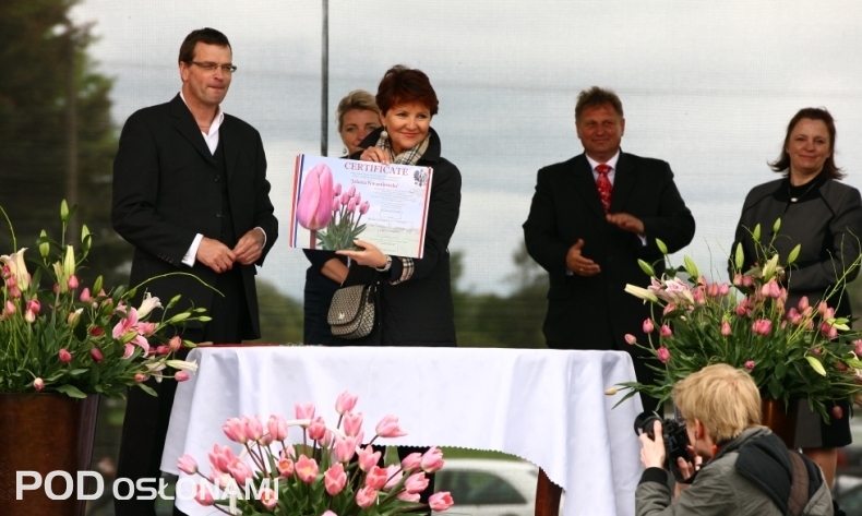 Niecodziennym wydarzeniem i kulminacją Międzynarodowych Targów Tulipanów był uroczysty chrzest nowej odmiany tulipana 'Jolanta Kwaśniewska’, z udziałem Pani Prezydentowej. – Jest to bardzo wczesna odmiana holenderskiej hodowli, należąca do grupy Triumph, o jasnoróżowych kwiatach oraz ciemnych łodygach, przydatna do pędzenia – informuje B. Królik.