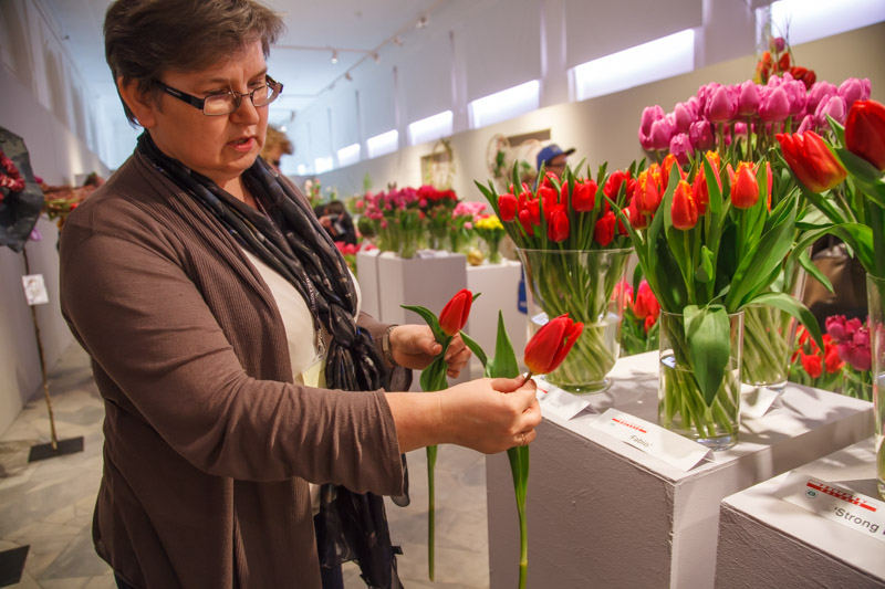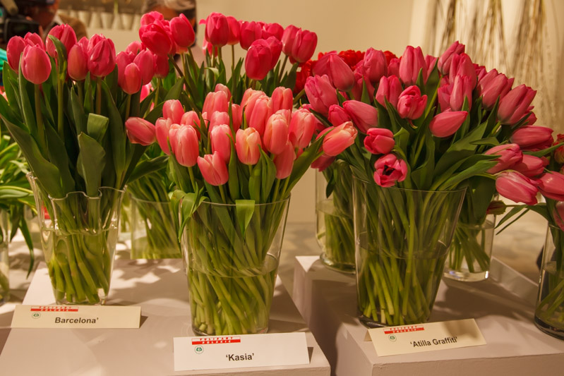 Warszawska wystawa jest zasługą ogrodników, członków SPORC, którzy to właśnie dostarczyli kwiaty do prezentacji. W tym roku przyczyniło się do tego aż 19 gospodarstw. Asortyment odmian był bardzo zróżnicowany, i nie brakowało wśród nich wielu nowych bardzo atrakcyjnych kreacji. Ciekawa i dobrze zaplanowana forma ich prezentacji budziła tylko dodatkowy zachwyt zwiedzających. W sposób szczególny wyeksponowano odmianę ‘Anna Komorowska’, gdyż to właśnie małżonka Prezydenta RP sprawowała patronat honorowy nad wystawą. W tym roku, jak przypomniała dr hab. Jadwiga Treder, Wystawa Tulipanów odbywała się po raz 6, w tym po raz 4 w oranżerii wilanowskiego pałacu. Pierwsza wystawa zlokalizowana była w tzw. kuchni pałacowej i miała dość kameralny charakter. Duże zainteresowanie przekonało nas, jak również dyrekcję Pałacu w Wilanowie, o potrzebie takich imprez. Przy drugiej edycji zorganizowaliśmy ją już w sali samego pałacu, ale reżim związany z ochroną zabytkowych pomieszczeń i eksponatów, jak również brak możliwości wykonywania zdjęć, również nie do końca spełniał nasze oczekiwania. Począwszy od III edycji Wystawy, orgaznizowana jest tu w Oranżerii i miejsce to okazuje się bardzo dobrym punktem do prezentacji tulipanów. Co roku staramy się też zaskakiwać naszych gości, odmienną formą prezentacji tych kwiatów i innymi atrakcyjnymi punktami  wystawy – przypomniała dr. J. Treder.