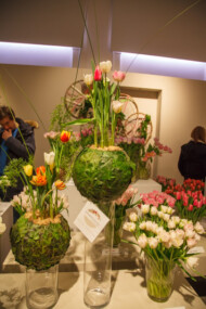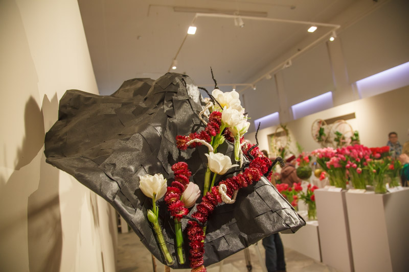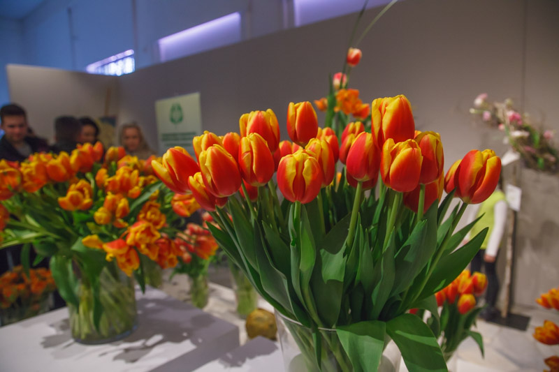 Przeszło 80 odmian tulipanów, przedstawiono zarówno solo jak i w postaci bardzo wyszukanych kompozycji. Była to zasługa dwóch pracowni florystycznych: Kwitnące horyzonty – Monika Bębenek i Magdalena Birula-Białynicka oraz Green Sense – Karolina Ładyżyńska-Skrzypek. Szczególnie w tym roku wyróżniały się kwiatowe kapelusze z tulipanami w roli głównej. Nie zabrakło też bardzo oryginalnych motywów w postaci np. łapaczy snów, które zamiast tradycyjnymi piórkami ozdobiono roślinami cebulowymi, wykorzystując je w postaci z cebulkami. Tulipany zaprezentowano również w kompozycji z innymi roślinami doniczkowymi na coraz bardziej modnych „zielonych ścianach”. Jak co roku bardzo dużym zainteresowaniem cieszyły się pokazy florystyczne, podczas których przedstawiono w jaki oryginalny sposób można wykorzystać kwiaty tulipanów i jakie niezwykłe kompozycje z nich przygotować. Okazuje się, że wystarczą do tego często przedmioty codziennego użytku , jak np. stare gazety czy kolorowe prospekty. Nie brakowało jak zwykle tematycznych wykładów dotyczących m.in. znaczenia tulipanów w sztuce i malarstwie, czy możliwości produkowania i oferowania tych kwiatów w okresie zimowym. Na specjalne atrakcje mogli liczyć również najmłodsi gości wystawy i podczas specjalnie dla nich przygotowanych warsztatów przekonać się, jakie to często niezauważalne gołym okiem organizmy są szkodnikami tulipanów.
