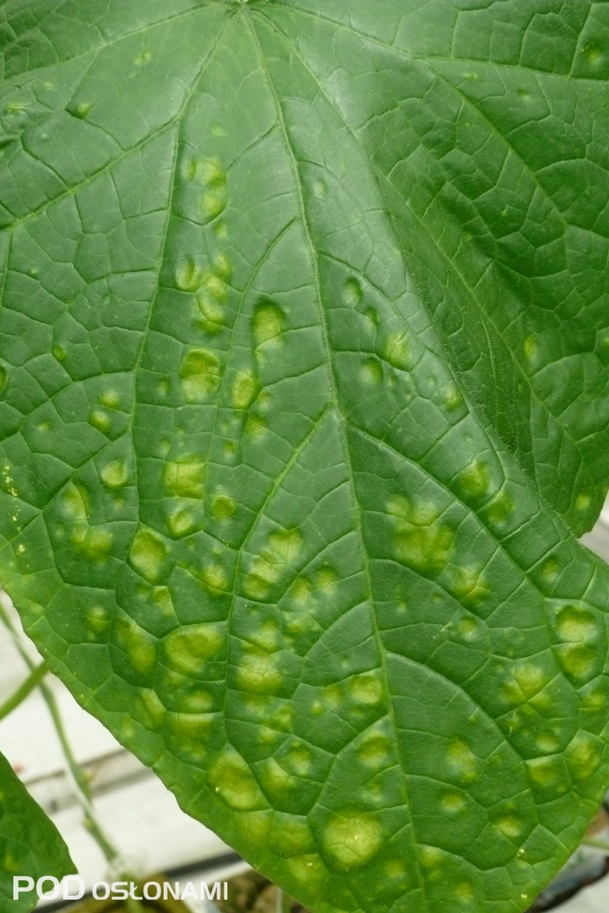 Rozjaśnione plamy na liściach (od spodu nieco przypominające oparzenia) w ocenie profesor Instytutu Ogrodnictwa w Skierniewicach, dr hab. Barbary Dyki (której przesłałam jedynie zdjęcia objawów) są najprawdopodobniej efektem zaburzeń wymiany gazowej – obejmujących relacje między transpiracją a oddychaniem i fotosyntezą. Bezpośrednim powodem jest zakłócenie w otwieraniu się aparatów szparkowych na skutek szoku termicznego, który nastąpił po zdjęciu dodatkowego ekranu z folii perforowanej i zmianie warunków w szklarni. Po zdjęciu folii roślinom „zrobiło się trochę zimno”, więc parowanie nie było im konieczne i aparaty szparkowe zamknęły się na dłużej, nie dopuszczając tym samym dwutlenku węgla w ciągu dnia, tlen nagromadzony w procesie oddychania został natomiast zatrzymany w komórkach miękiszowych co stworzyło warunki do tzw. fotooddychania, hamującego proces fotosyntezy.