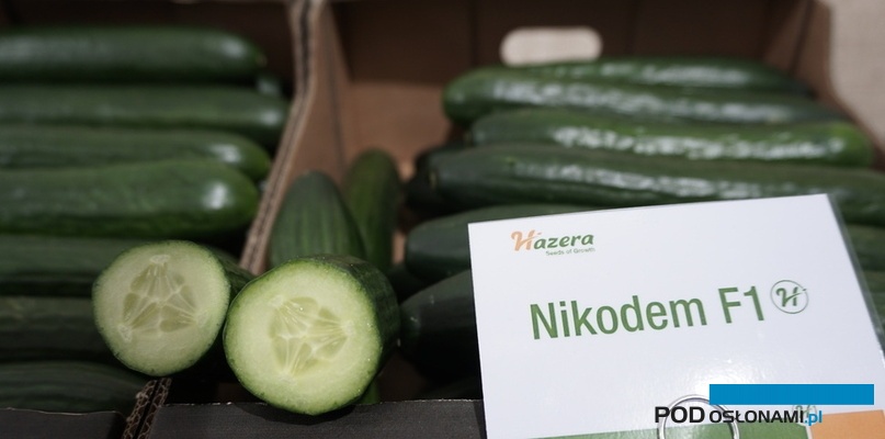 Janusz Gajzler reprezentujący firmę Hazera zwracał uwagę na nowość w ofercie, jaką jest ogórek półdługi Nikodem o ciemnozielonych, lekko żebrowanych owocach długości 21-24 cm. Atutami tej odmiany są wysoka plenność i dobra jakość owoców – mają one małą komorę nasienną, są trwałe – po kilku dniach od zbioru owoce nadal mają ładny połysk i są twarde. Odmiana jest polecana do sadzenia od lutego. Kolejną nowością w ofercie jest ogórek Nikoletta o owocach długości 18-20 cm, wyrównanych. Jest bardzo wczesna, polecana na nasadzenia wiosenne (w lutym lub marcu). Odmiana regularnie zawiązuje owoce, jest plenna.
