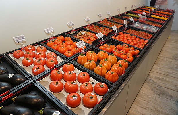 Krzysztof Banaszak wyjaśniał, że założeniem powstania Retail Centre w Berlinie było pokazanie klientom w jednym miejscu tego, jak mogą być oferowane warzywa z hodowli firmy w sieciach handlowych – w różnych opakowaniach, od kubeczków, pudełek, tacek, woreczków czy różnych opakowań typu flow-pack, po różne sposoby oferowania pojedynczych warzyw z etykietą, czy w doniczce – w taki sposób oferowane mogą być sałaty z upraw hydroponicznych. Trzeba przyznać, że bogaty, kolorowy i atrakcyjnie wyeksponowany asortyment pomidorów, papryki, ogórków, bakłażanów, sałat i wielu innych warzyw z hodowli Rijk Zwaan robi wrażenie – o czym możecie się przekonać przeglądając poniższą galerię zdjęć.