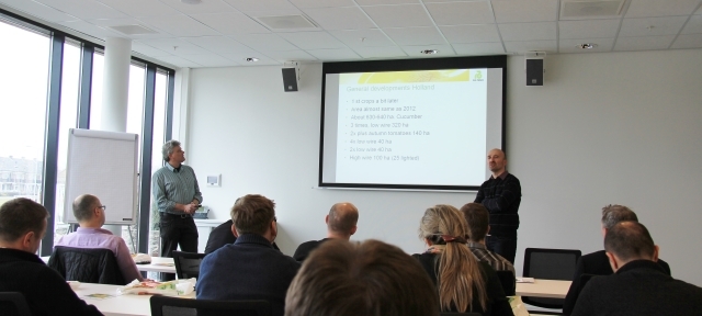 Kolejnym punktem spotkania było seminarium. Specjaliści ds. uprawy ogórków z zaprezentowali kilka aktualnych i interesujących tematów dotyczących uprawy ogórków szklarniowych. Ronald van den Bulk z Rijk Zwaan Holandia przedstawił porównanie uprawy ogórków szklarniowych w systemach „na parasol” oraz „wysokiego drutu” (z opuszczaniem roślin). Polskich gości szczególnie zainteresowała korelacja pomiędzy kosztami uprawy, a dochodem. Prelegent przedstawił prawidłową metodę wyliczeń ułatwiającą dobór systemu produkcji dla konkretnego gospodarstwa.