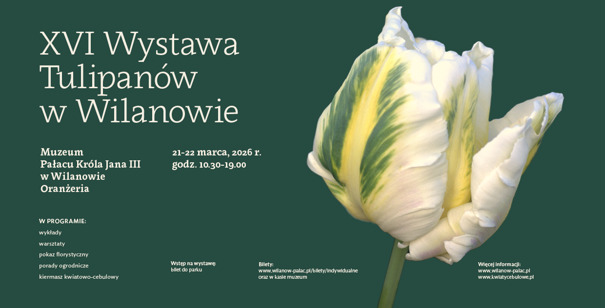 Organizatorzy – Muzeum Pałacu Króla Jana III w Wilanowie, Stowarzyszenie Producentów Ozdobnych Roślin Cebulowych – już po raz szesnasty zapraszają miłośników tulipanów na wystawę poświęconą tym wiosennym kwiatom cebulowym. Wydarzenie odbędzie się pod patronatem Instytutu Ogrodnictwa – PIB Skierniewice oraz Europejskiego Szlaku Ogrodów Historycznych.