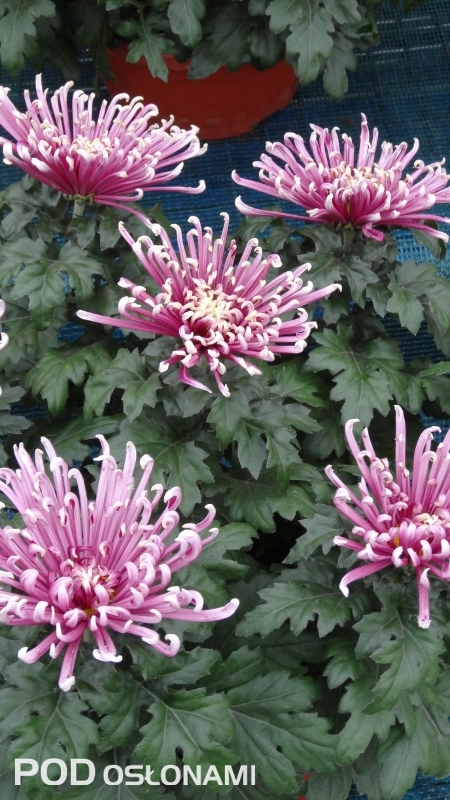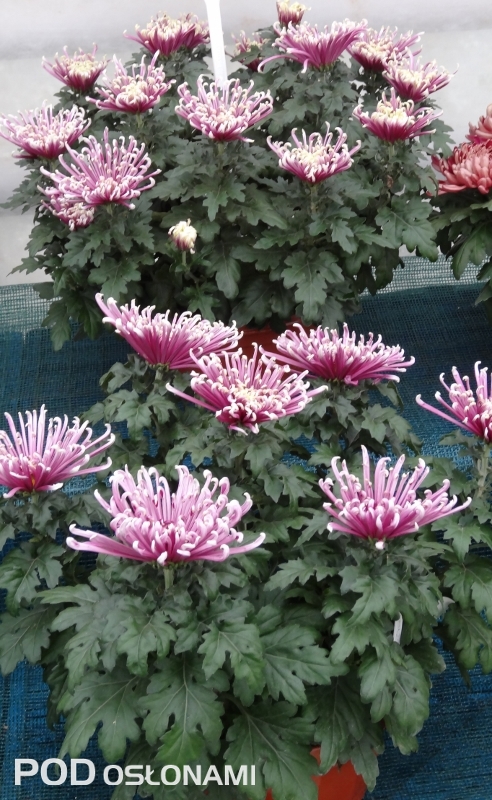 Odmiany chryzantem o różowych kwiatostanach zaprezentowane podczas spotkania Eurochryzantemy 2012 w Praszce, w gospodarstwie Kazimierza Pychyńskiego