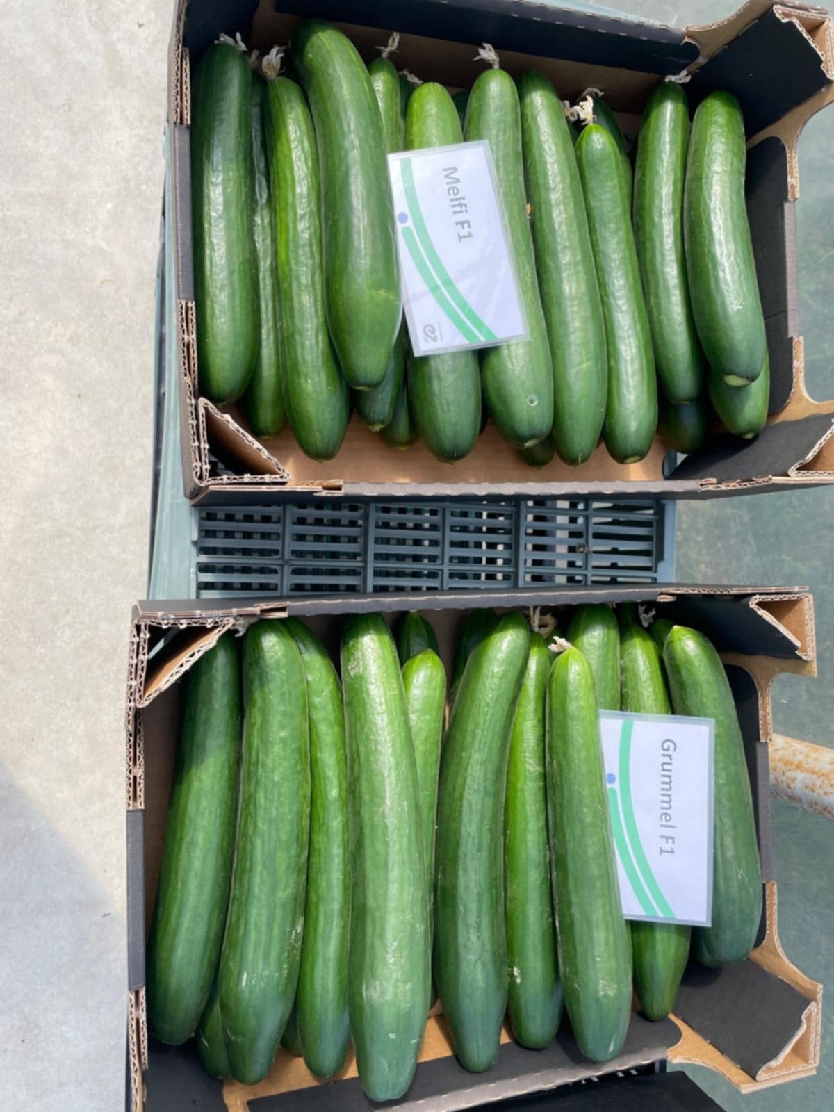W czasie spotkania w miejscowości Dębe Kolonia ogrodnicy mieli okazję także zobaczyć owoce innych odmian ogórka z asortymentu firmy Enza Zaden, przeznaczonych do uprawy w szklarniach i tunelach. Był m.in. Grummel, o owocach nieco dłuższych, niż u poprzedniej odmiany (22-25 cm), ciemnozielonych, żebrowanych i z lekkim połyskiem. Charakteryzują się one wysoką jakością i dobrą trwałością pozbiorczą.