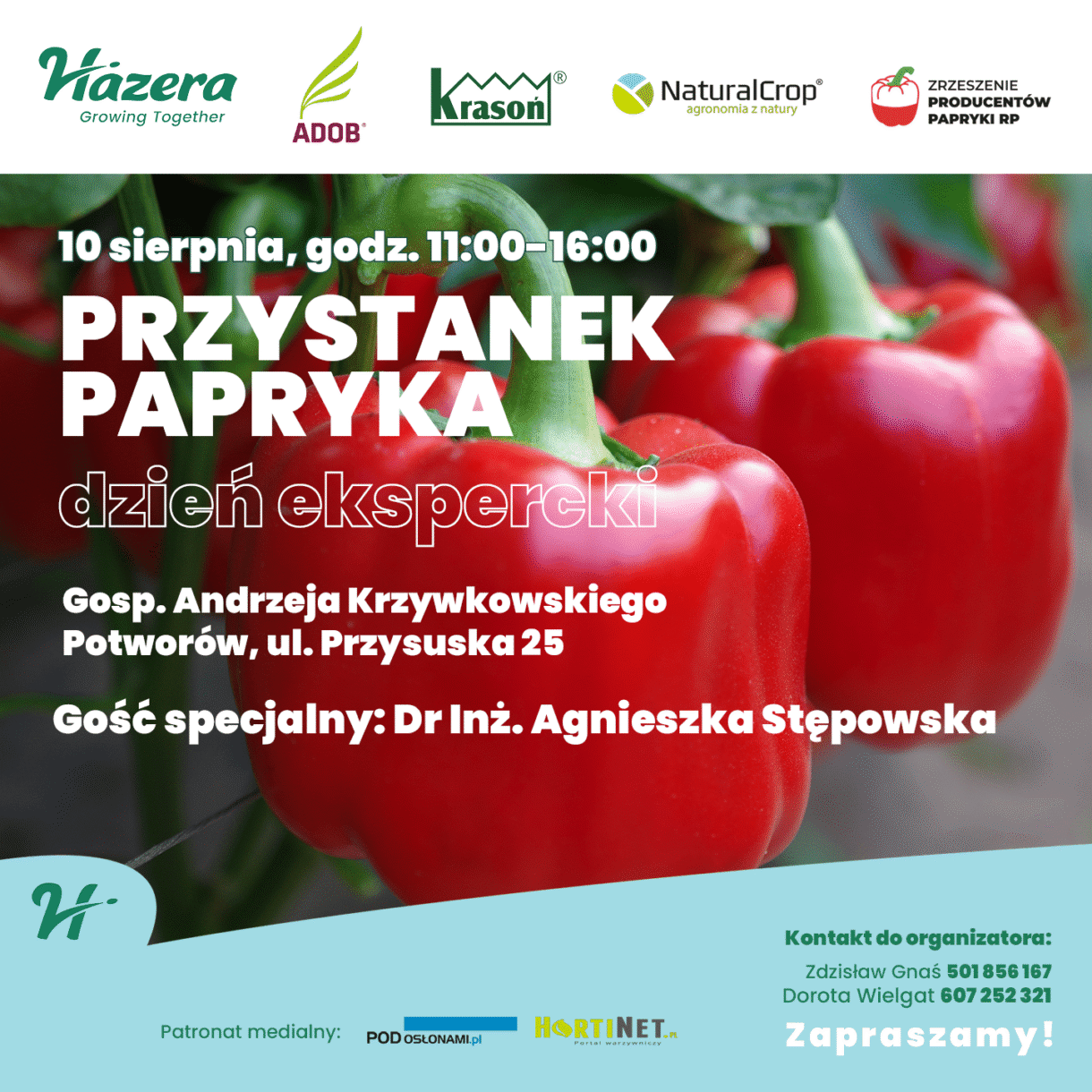 Spotkanie z producentami papryki pt. Przystanek Papryka odbędzie się kolejny raz w gospodarstwie pana Andrzeja Krzywkowskiego w Potworowie, w okolicach Radomia. Pan Andrzej w uprawie papryki specjalizuje się już od 30 lat. Początkowo warzywo to uprawiał na niewielkiej powierzchni, trzech arów, obecnie jego plantacja papryki pod osłonami (w tunelach Haygrove) zajmuje już 2 hektary, a uzupełnia ją 0,5 hektarowa uprawa w polu. Od wielu lat ogrodnik współpracuje z firmą Hazera. W tym wyjątkowo trudnym dla producentów papryki roku z inicjatywy tej firmy hodowlano-nasiennej kolejny już raz w jego gospodarstwie odbędą się paprykowe prezentacje i konsultacje uprawowe pt. Przystanek Papryka. Współorganizatorami wydarzenia są firmy Grupa Producentów Rozsad Krasoń, ADOB, NaturalCrop, Nutri-Plant i Zrzeszenie Producentów Papryki RP. Mimo niełatwego sezonu pan Andrzej Krzywkowski stwierdził – tak, jak co roku, posprzątamy i przyjmiemy wszystkich gości. Okazuje się, że nawet, gdy nastroje wśród producentów są niewesołe, warto spotykać się i rozmawiać.